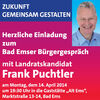 Zur Diskussion über diese Themen lädt Frank Puchtler zum Bürgergespräch